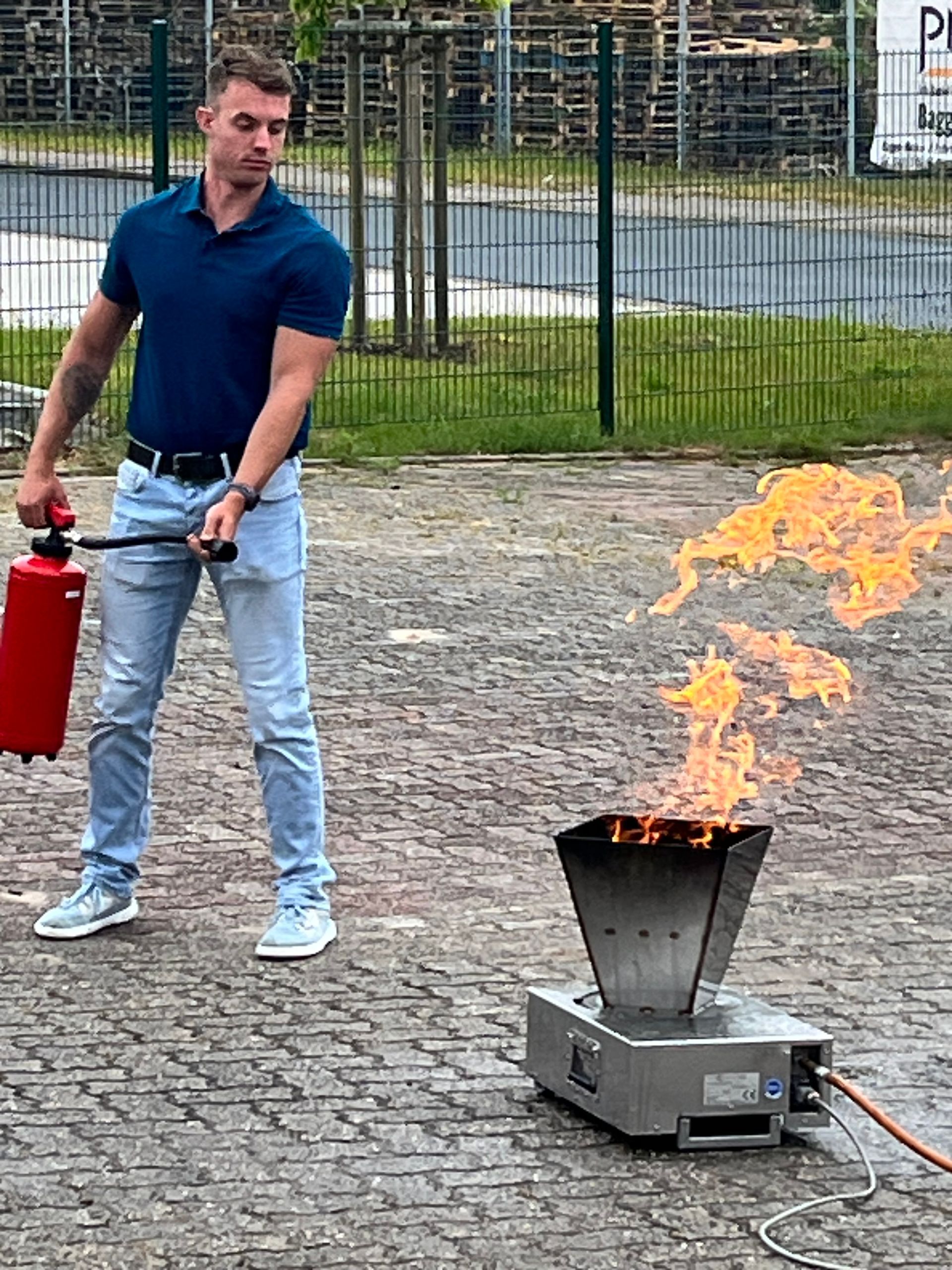 Brandbestrijdingstraining met Joachim Loesing, arbeidsveiligheids- en brandbeveiligingsvakman van MP-Weser-Ems.